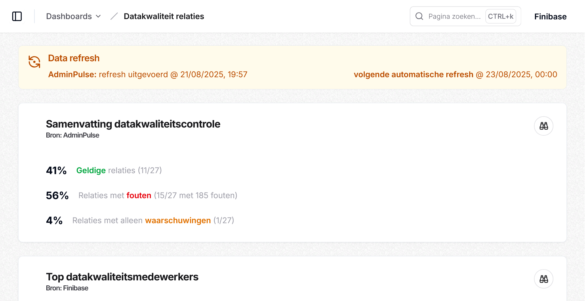In de widget voor de gedetailleerde datakwaliteitscontrole vind je voortaan een handige tooltip die uitlegt welke controles bij welke categorie horen. De meldingen zijn gegroepeerd in 4 duidelijke groepen: