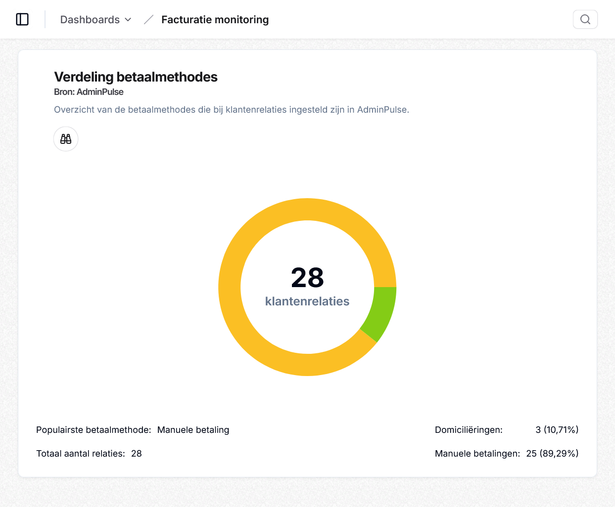 Zo zie je meteen hoeveel relaties via domiciliëring betalen en hoeveel nog met manuele overschrijvingen werken.