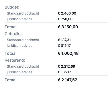 Elke opdracht heeft een eigen instelbaar budget, afgestemd op het specifieke facturatieschema.